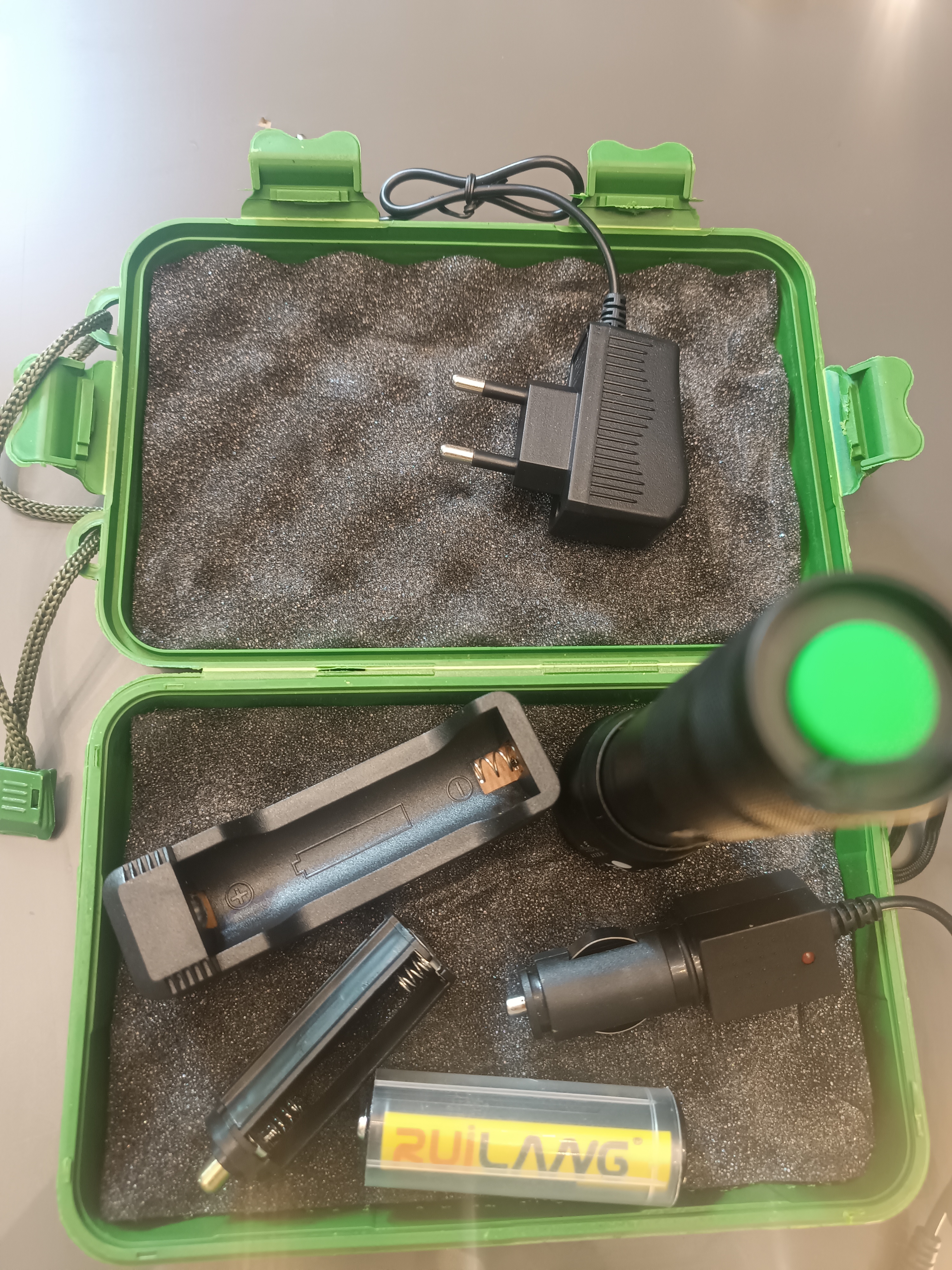 شارژ از طریق USB و باتری قابل شارژ (مثلاً باتری 26650 Li-ion) همراه با آداپتور AAA به عنوان گزینه جایگزین.